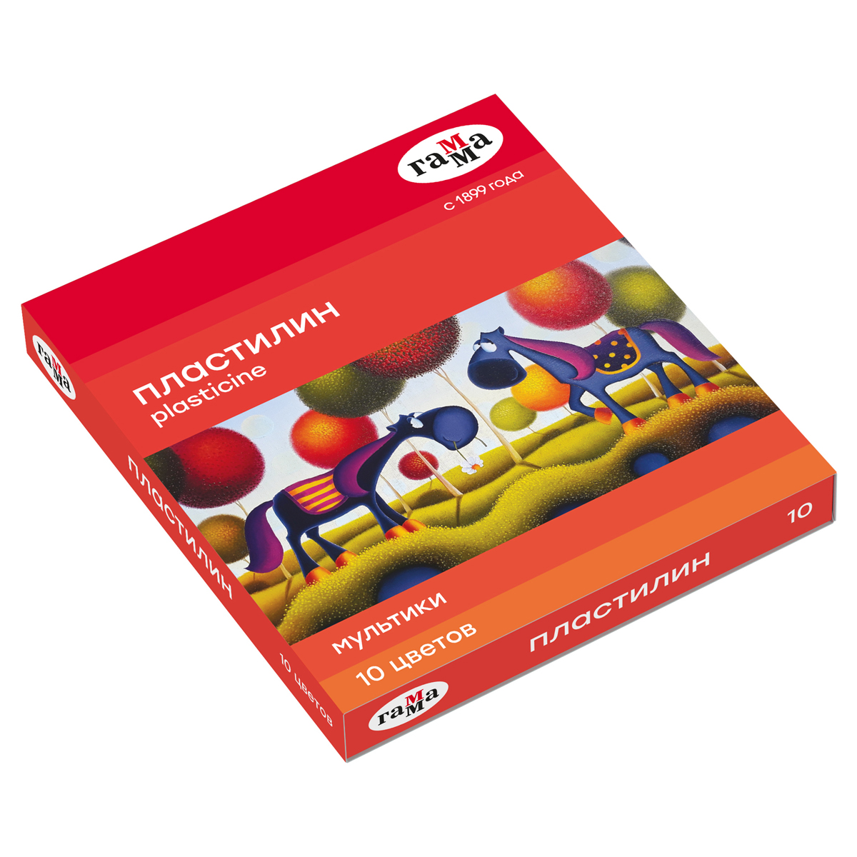 Пластилин классический ГАММА "Мультики", 10 цветов, 200 г, со стеком, картонная упаковка, 280017/281017