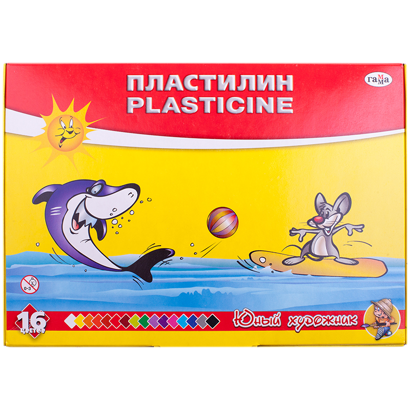 Пластилин Гамма "Юный художник", 16 цветов, 224г, со стеком, картон. упак.