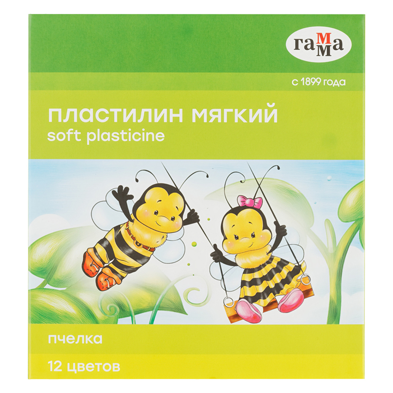 УЦЕНКА - Пластилин восковой мягкий Гамма "Пчелка", 12 цветов, 180г, со стеком, картон. упаковка