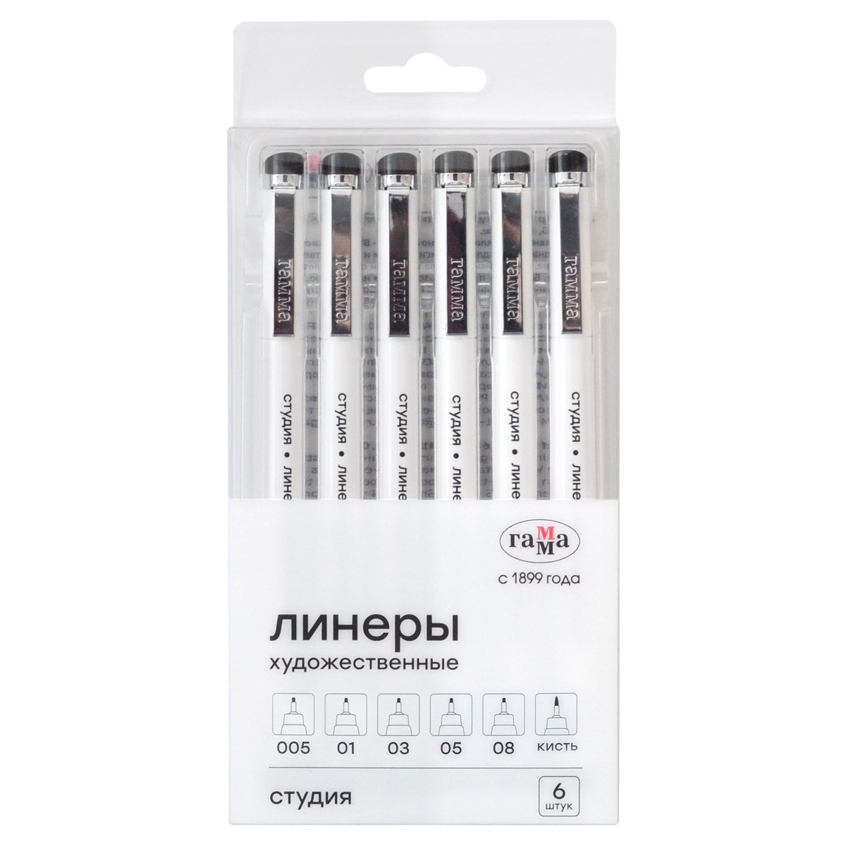 Набор линеров Гамма "Студия" черные, 6шт., 0,05/0,1/0,2/0,3/0,5/0,8мм