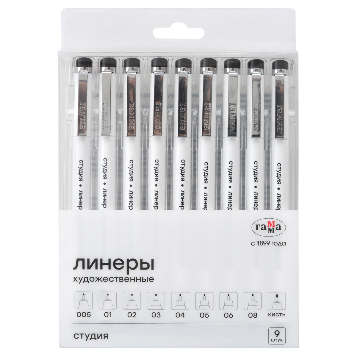 Набор линеров Гамма "Студия" черные, 9шт., 0,05/0,1/0,2/0,3/0,4/0,5/0,6/0,8/1,0мм