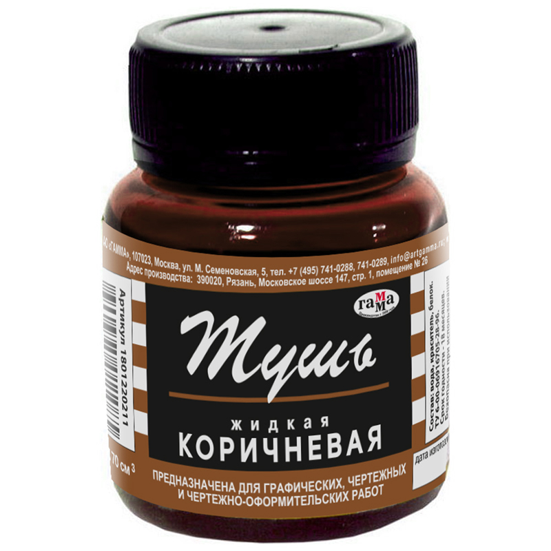 Тушь акриловая Гамма, коричневая, 35мл