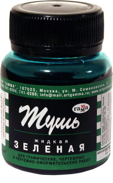 Тушь жидкая Гамма, черная, 70мл