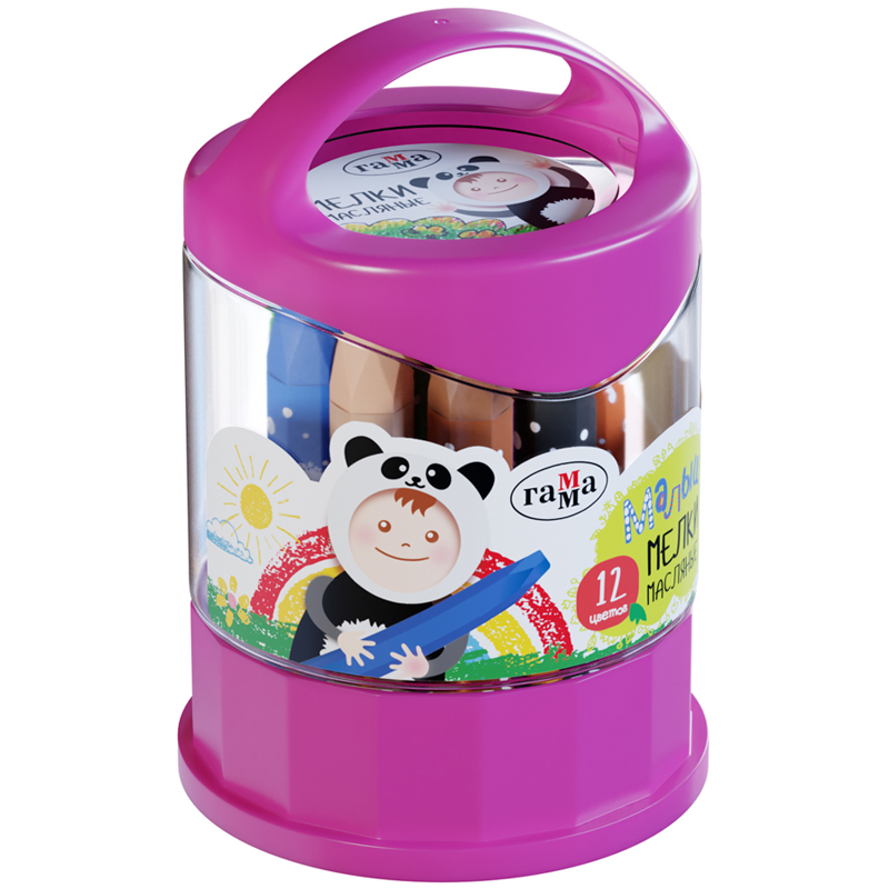 Мелки масляные Гамма "Малыш", 12цв., шестигранные, пластиковый стакан-подставка