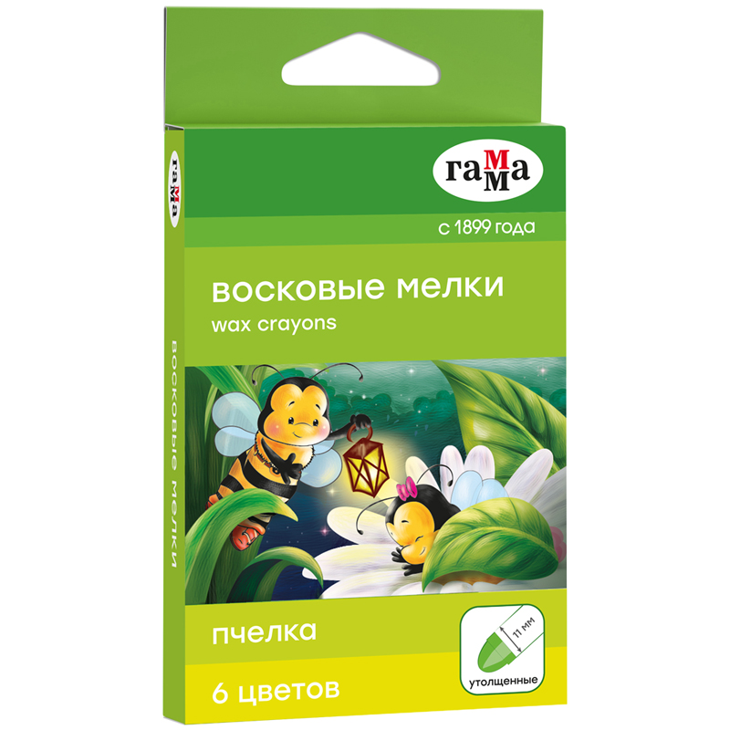 Мелки восковые "Пчелка", 6цв., круглые, картон, европодвес