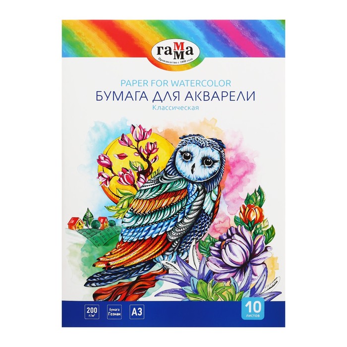 Бумага для акварели А3 10 листов, 200 г/м2, "Классическая" Гамма, в папке, 180523_А320010