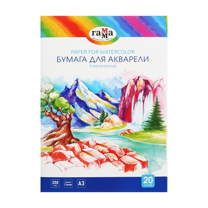 Бумага для акварели А3 20 листов, 200 г/м2, "Классическая" Гамма, в папке, 180523_А320020