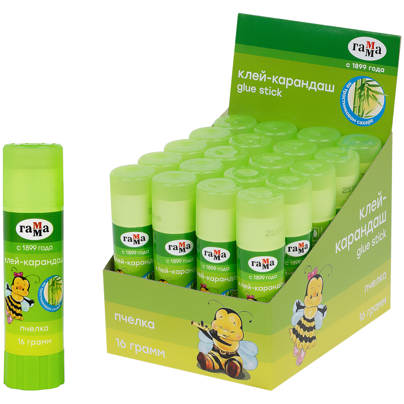 Клей-карандаш Гамма "Пчелка", 16г, прозрачный, ПВП