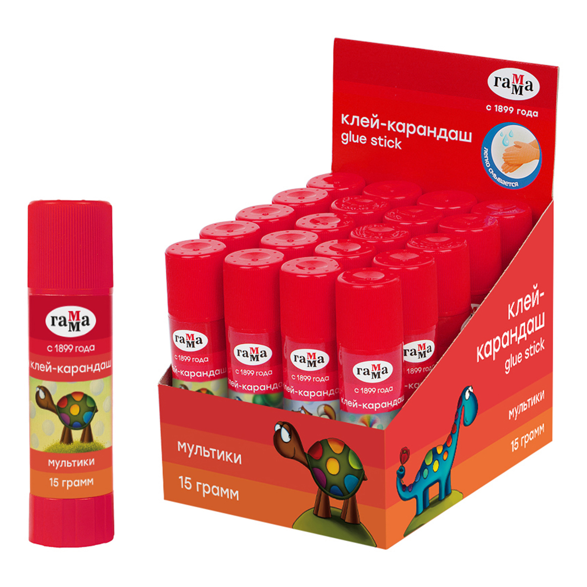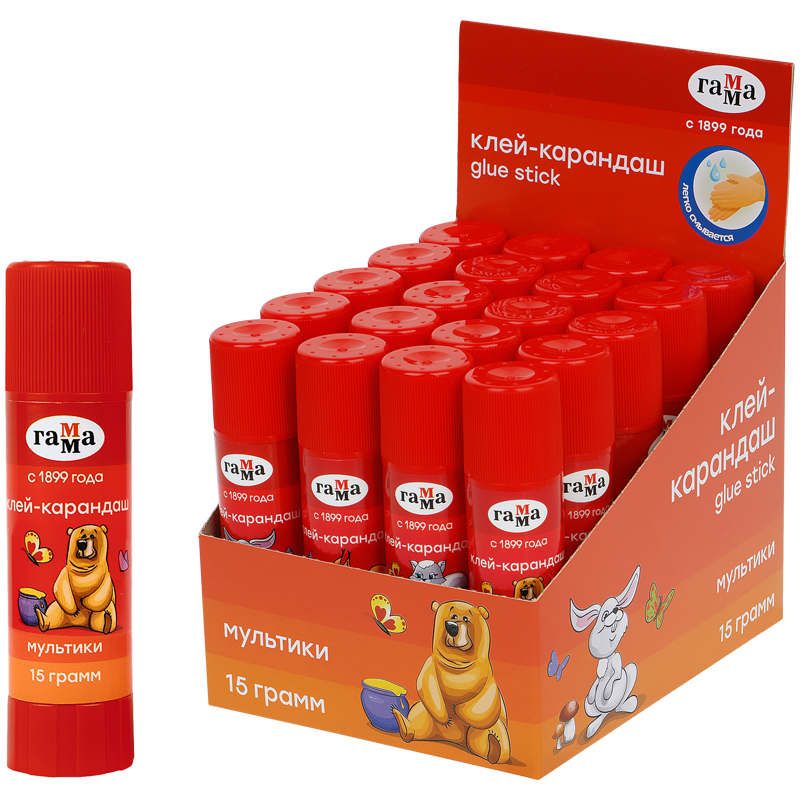 Клей-карандаш Гамма "Мультики", 15г, ПВП