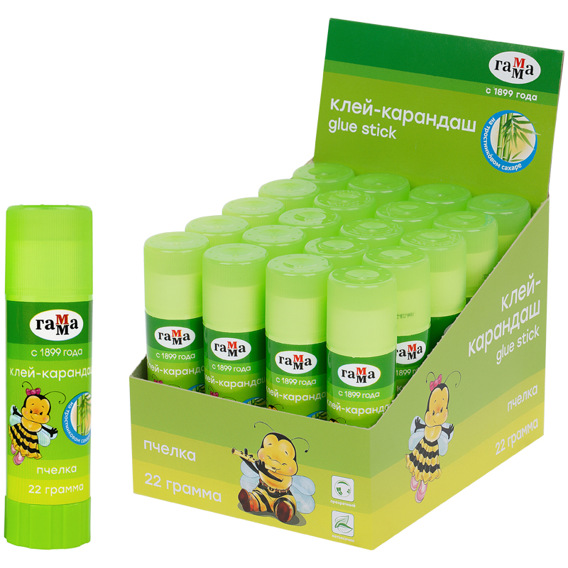 Клей-карандаш Гамма "Пчелка", 22г, прозрачный, ПВП