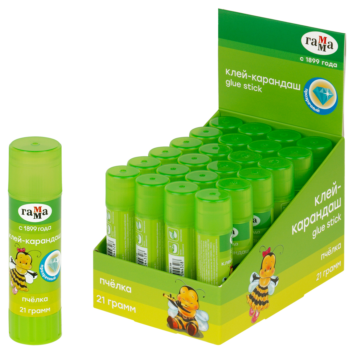 Клей-карандаш Гамма "Пчелка", 21 г, прозрачный, ПВП
