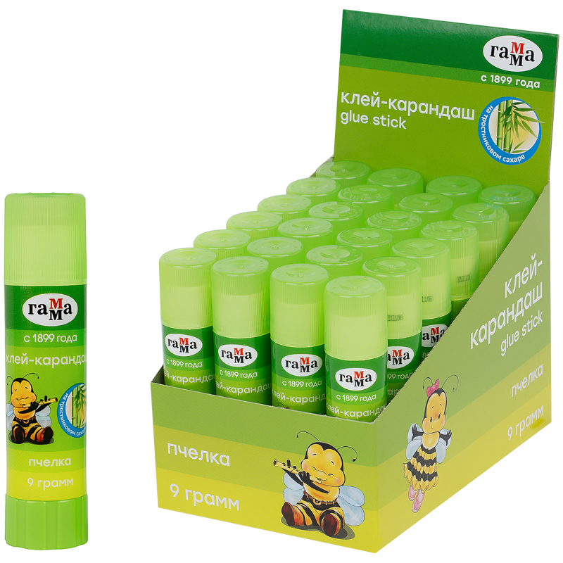 Клей-карандаш Гамма "Пчелка", 9г, прозрачный, ПВП