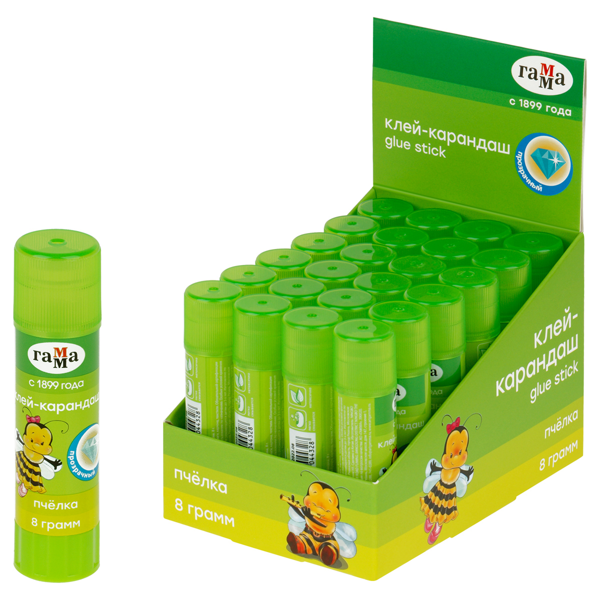 Клей-карандаш Гамма "Пчелка", 8г, прозрачный, ПВП