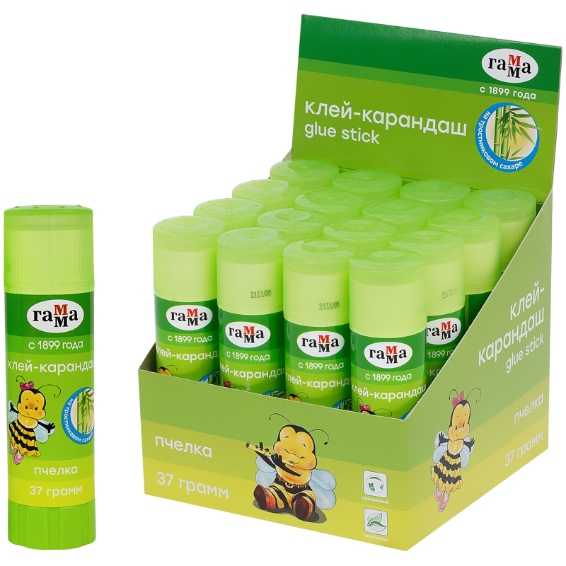 Клей-карандаш Гамма "Пчелка", 37г, прозрачный, ПВП