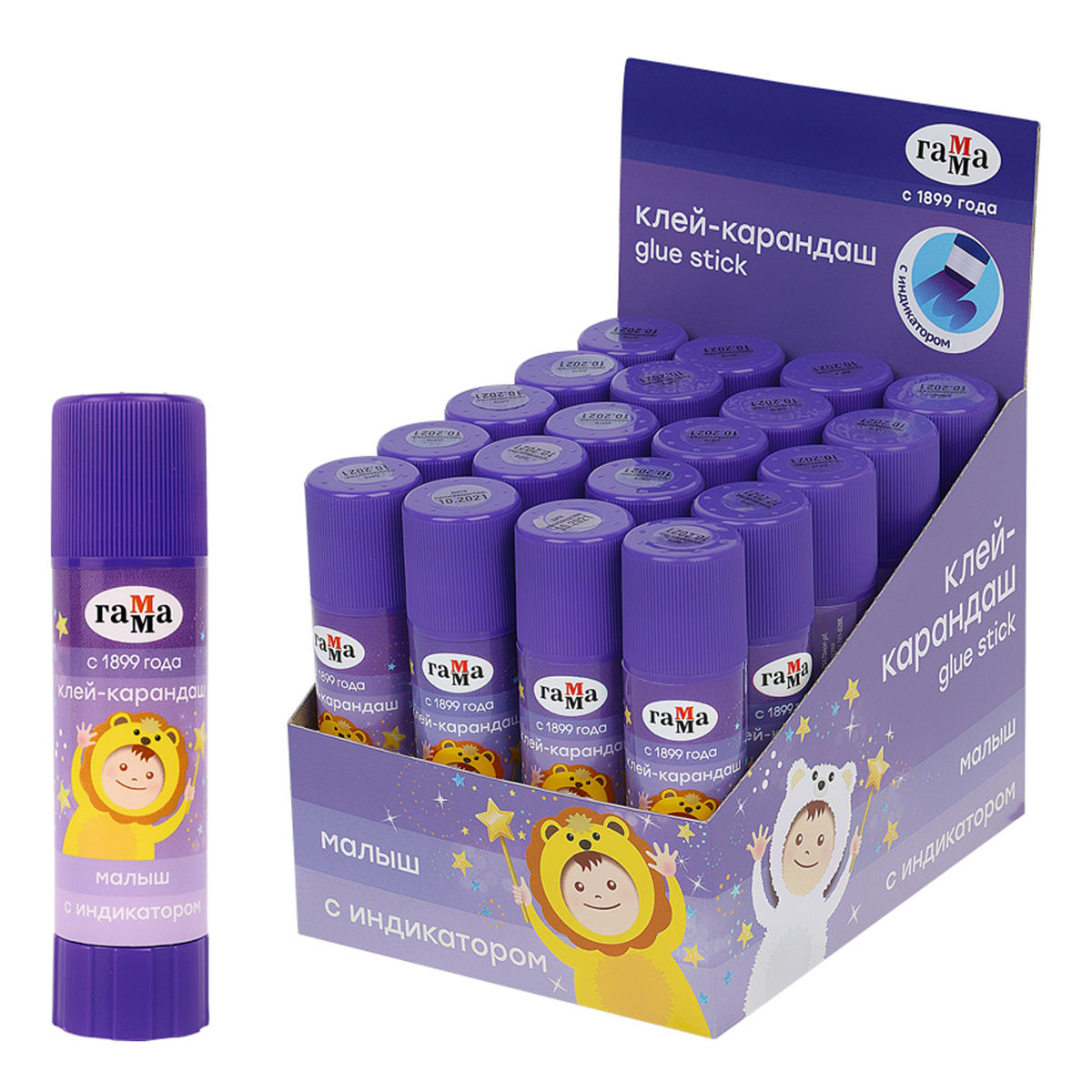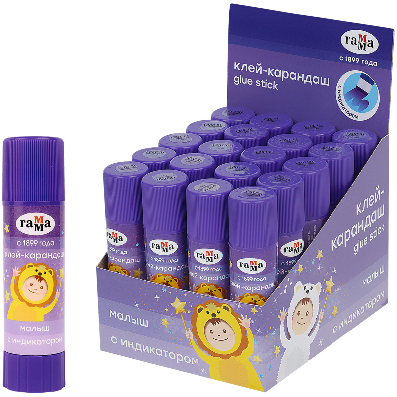 Клей-карандаш Гамма "Малыш", 16г, с индикатором, ПВП