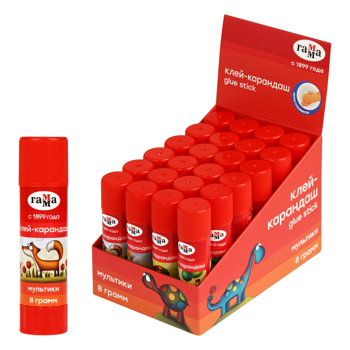 Клей-карандаш Гамма "Мультики", 08г , ПВП