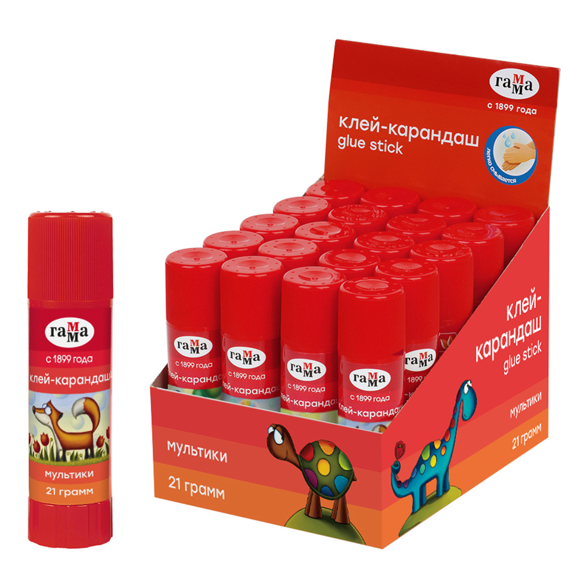 Клей-карандаш Гамма "Мультики", 21г, ПВП