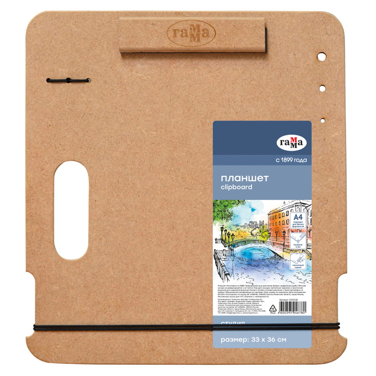 Планшет-клипборд МДФ, А2 (53*68см) Гамма "Студия", магнитный зажим, ручка, ремень