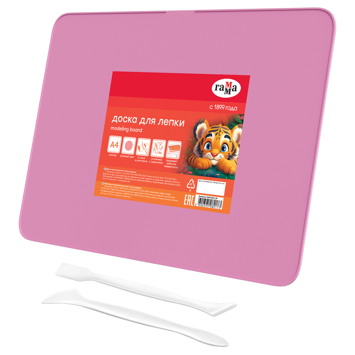 Доска для лепки Гамма, А4+2 стека, пластик, розовый