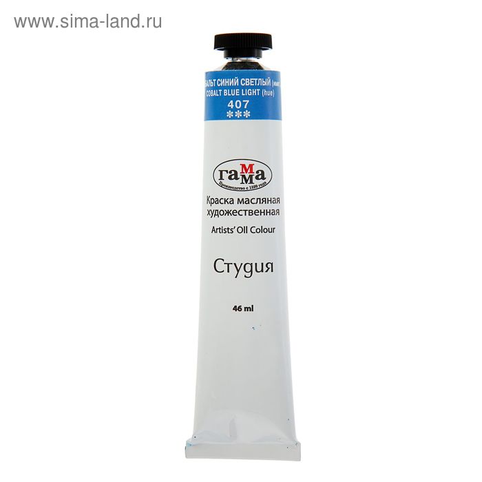Краска масляная в тубе 46 мл, Гамма "Студия", №407 кобальт синий светлый
