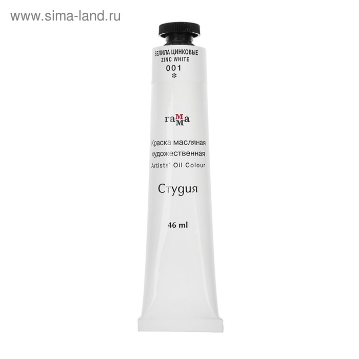 Краска масляная в тубе 46 мл, Гамма "Студия", №001 белила цинковые