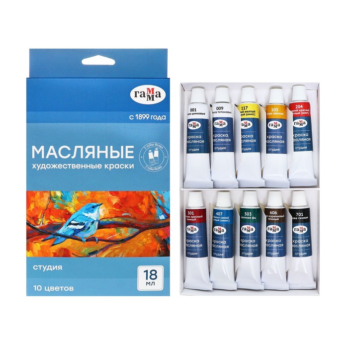 Краска масляная художественная, набор 10 цветов х 18 мл, в тубах, Гамма "Студия", 201005
