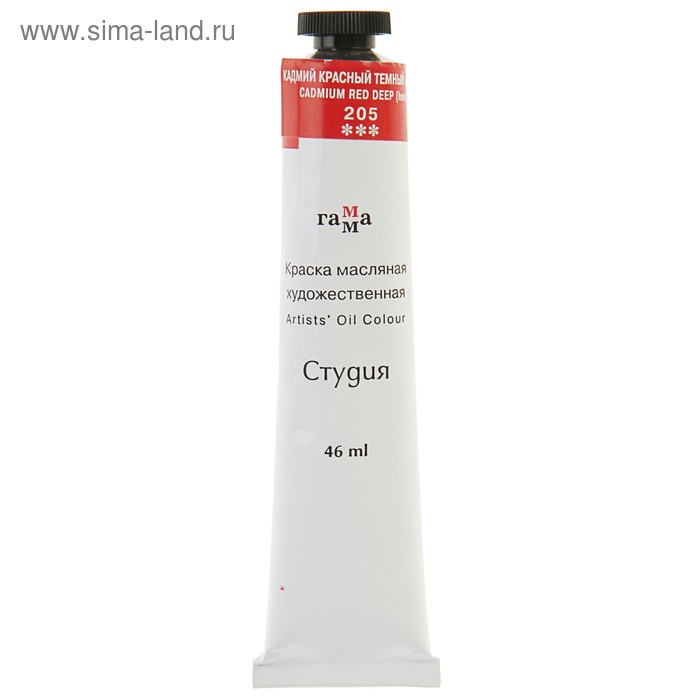 Краска масляная в тубе 46 мл, Гамма "Студия", №205 кадмий красный тёмный, имитация
