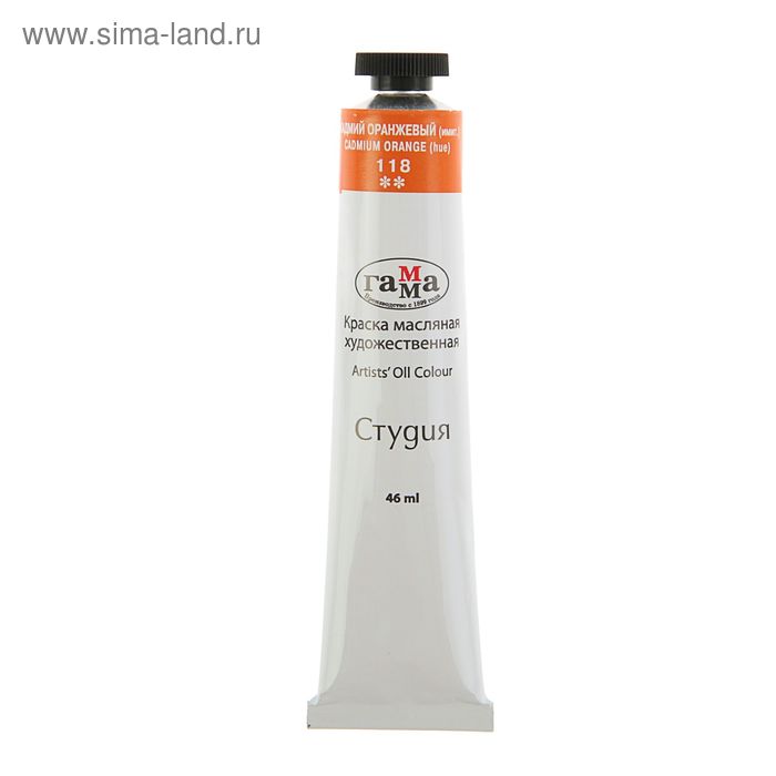 Краска масляная в тубе 46 мл, Гамма "Студия", №118 кадмий оранжевый, имитация