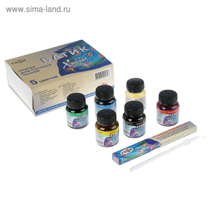 Краска по ткани Гамма "Батик-хобби", набор 5 цветов х 75 мл + резервирующий состав