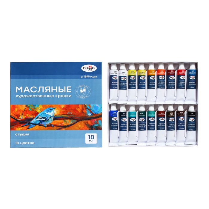 Краска масляная в тубе, набор 18 цветов х 18 мл, Гамма "Студия"