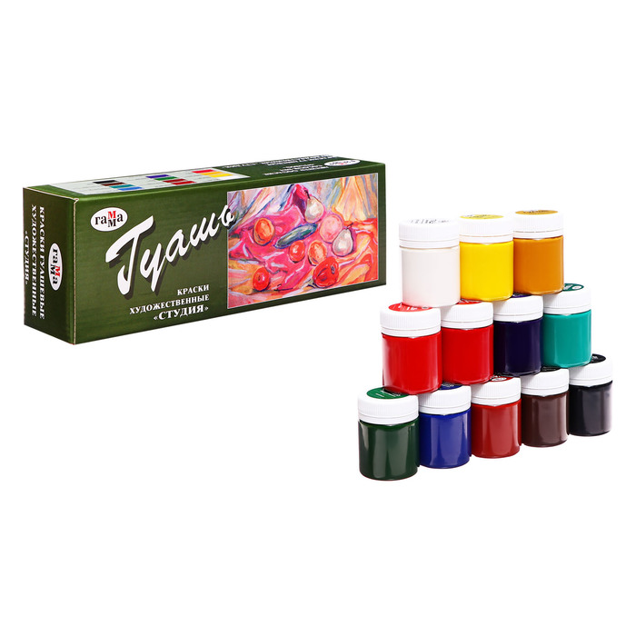 Гуашь художественная набор 12 цветов х 40 мл, Гамма "СТУДИЯ", 221029