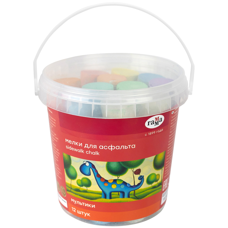 Мелки для асфальта Гамма "Мультики" цветные, 12шт., круглые, пластиковое ведро NEW