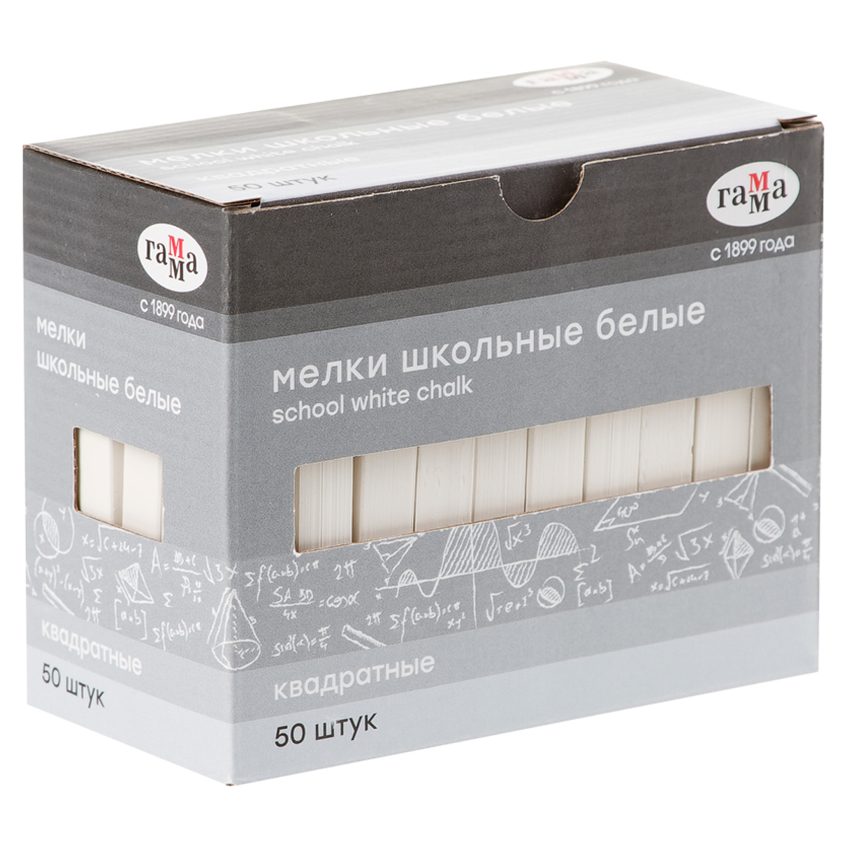 Мелки школьные Гамма, белые, 50шт., мягкие, квадратные, картонная коробка