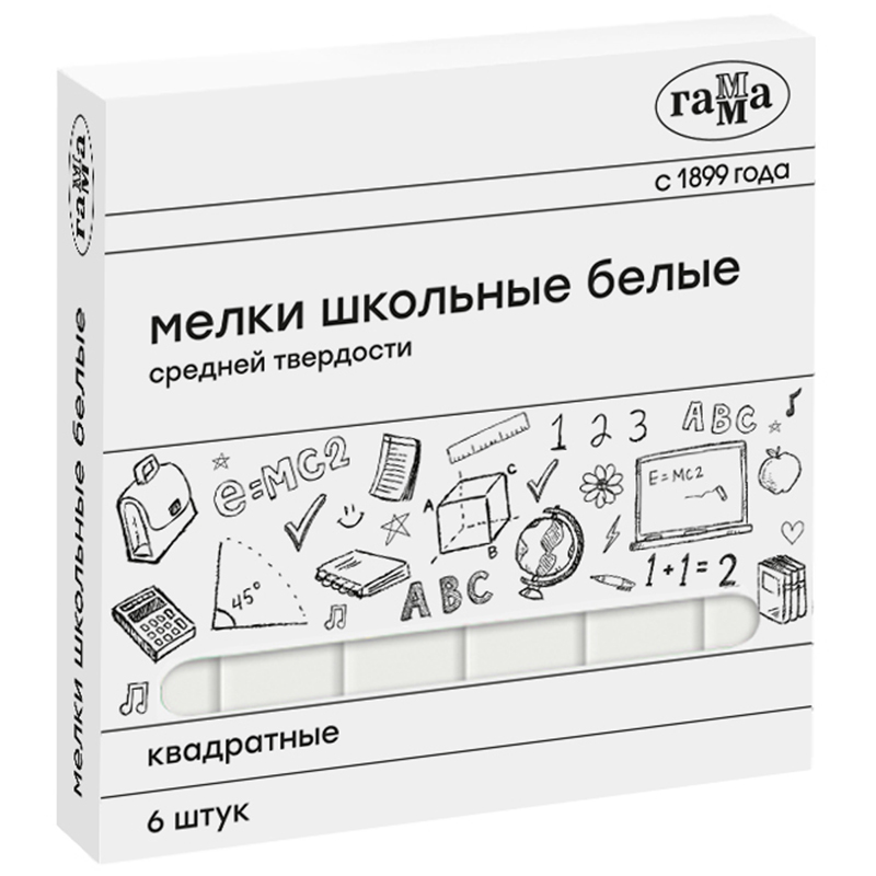 Мелки школьные Гамма, белые, 06шт., средней твердости, квадратные, картонная коробка