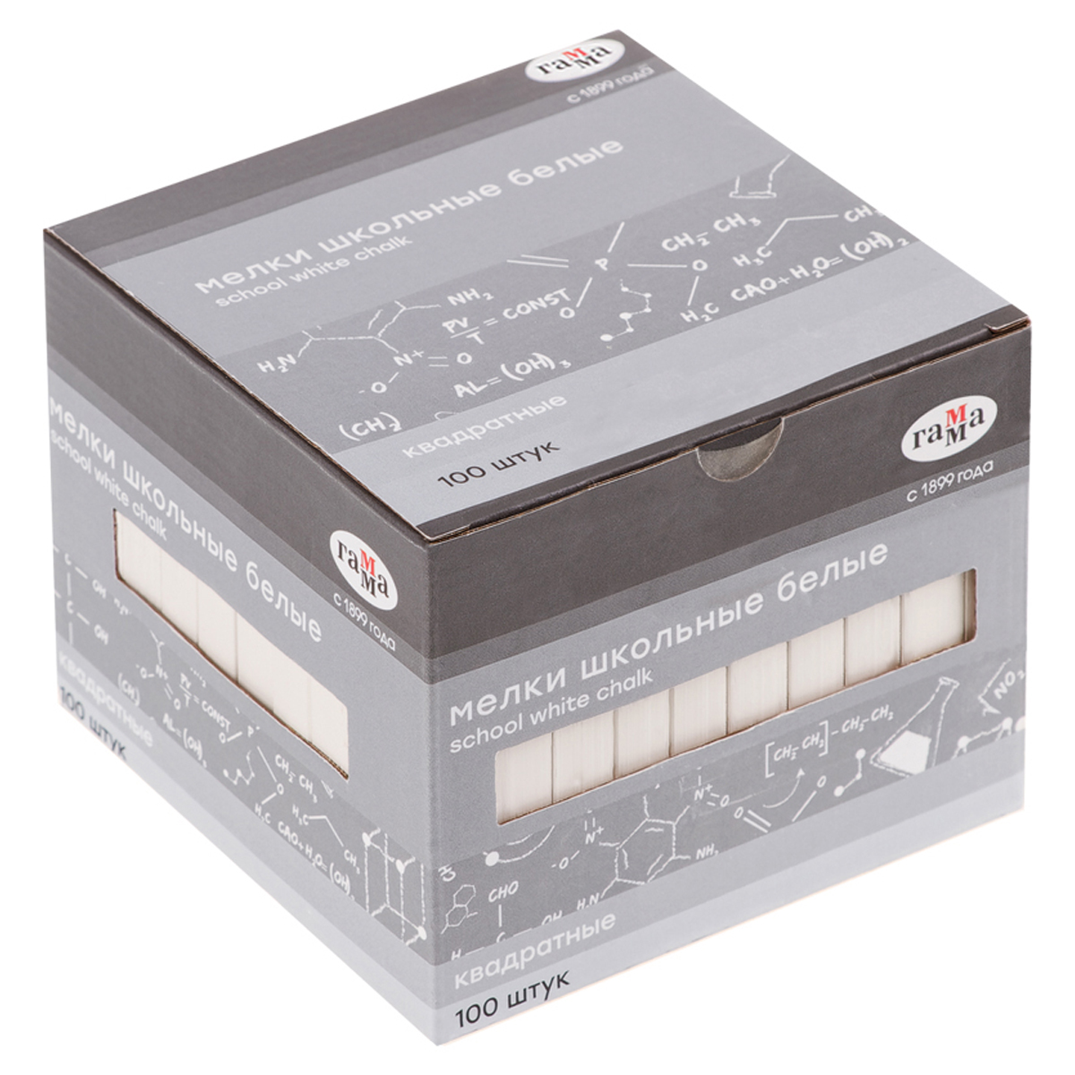 Мелки школьные Гамма, белые, 100шт., средней твердости, квадратные, картонная коробка