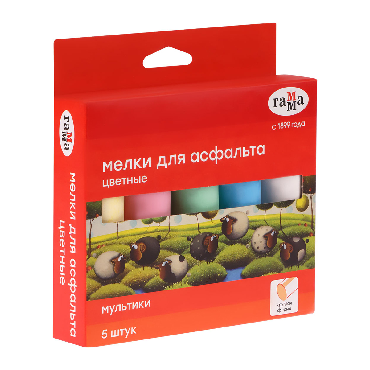 Мелки для асфальта Гамма "Мультики" цветные, 5шт., круглые, картонная коробка