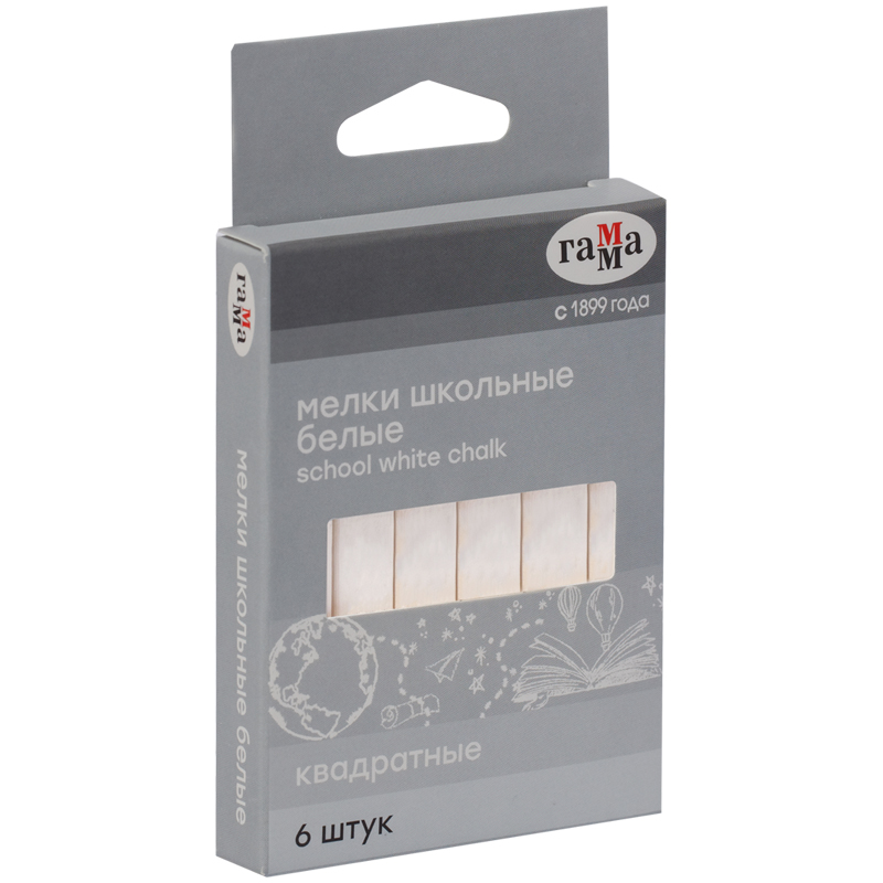 Мелки школьные Гамма, белые, 06шт., мягкие, квадратные, картонная упаковка, европодвес