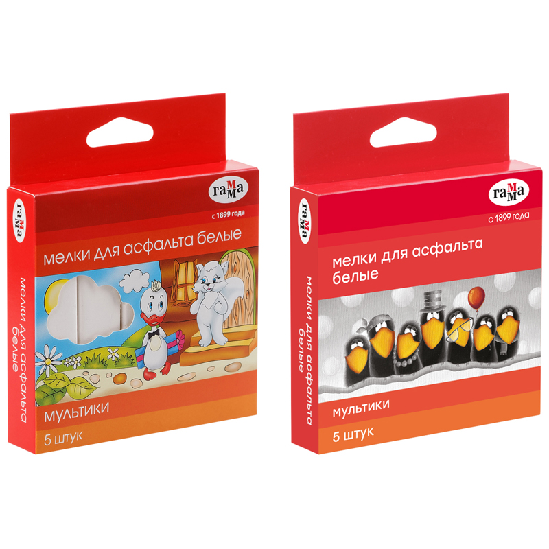 Мелки для асфальта Гамма "Мультики", белые, 5шт., квадратные, картонная упаковка, европодвес