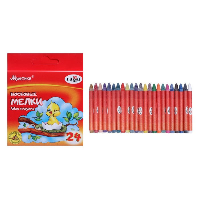 Мелки восковые 24 цвета, "Гамма" "Мультики", круглые, европодвес