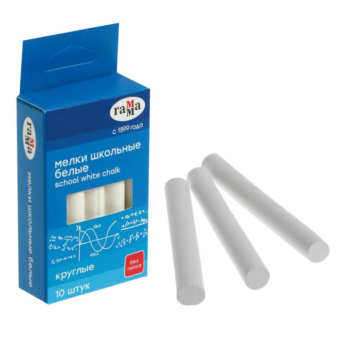 Мелки для рисования "Гамма", белые, 10 штук, мягкие, круглая форма, картонная коробка