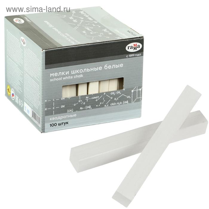 Мелки для рисования "Гамма", белые, 100 штук, мягкие, квадратная форма, картонная коробка