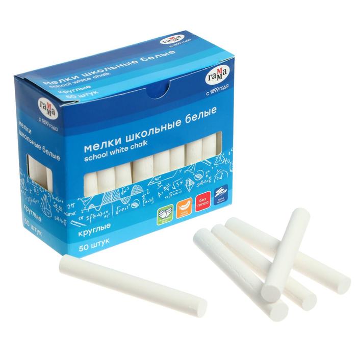 Мелки белые "Гамма", мягкие, круглая форма, 50 штук, картонная коробка