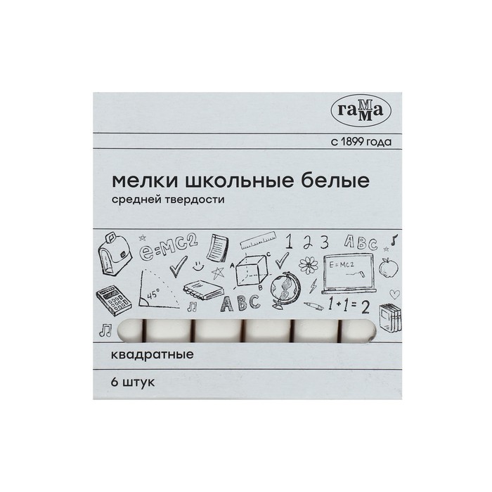 Мелки для рисования "Гамма", белые, 6 штук, средней твёрдости, квадратная форма, картонная коробка, 280120214