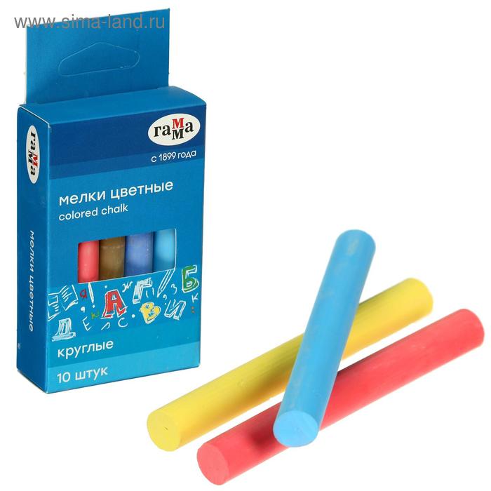 Мелки для рисования "Гамма", цветные, 10 штук, мягкие, круглая форма, картонная коробка