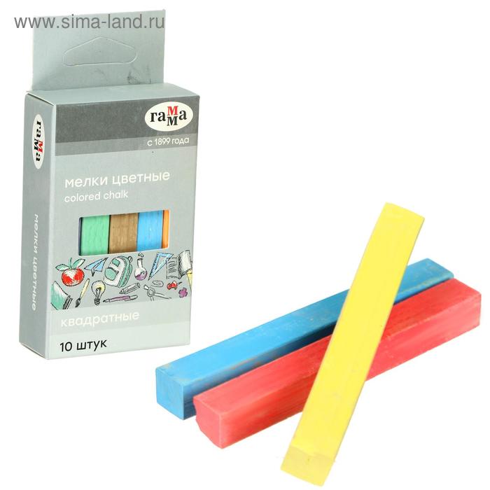 Мелки для рисования "Гамма", цветные, 10 штук, мягкие, квадратная форма, картонная коробка