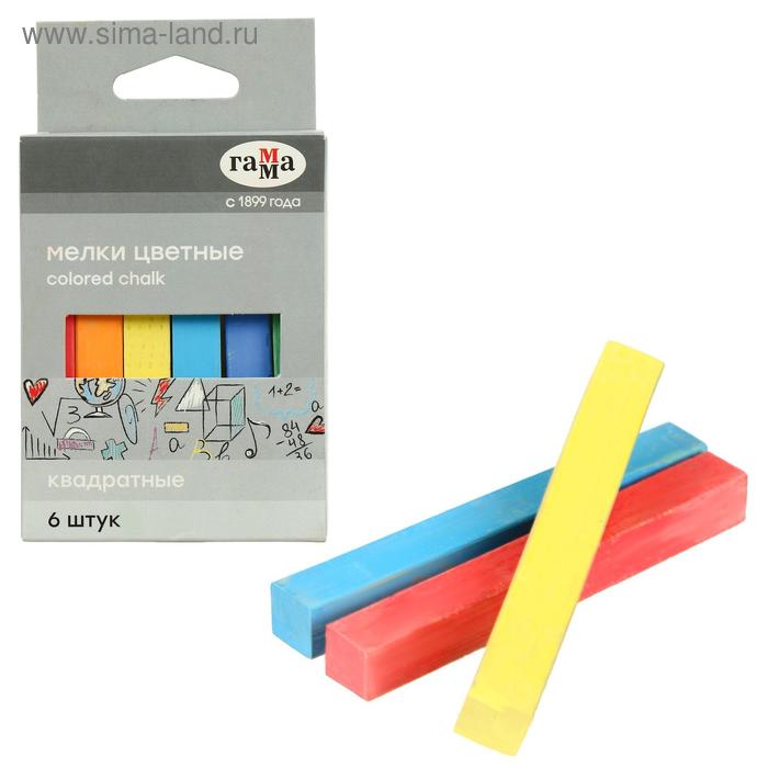 Мелки для рисования "Гамма", цветные, 6 штук, мягкие, квадратная форма, картонная коробка