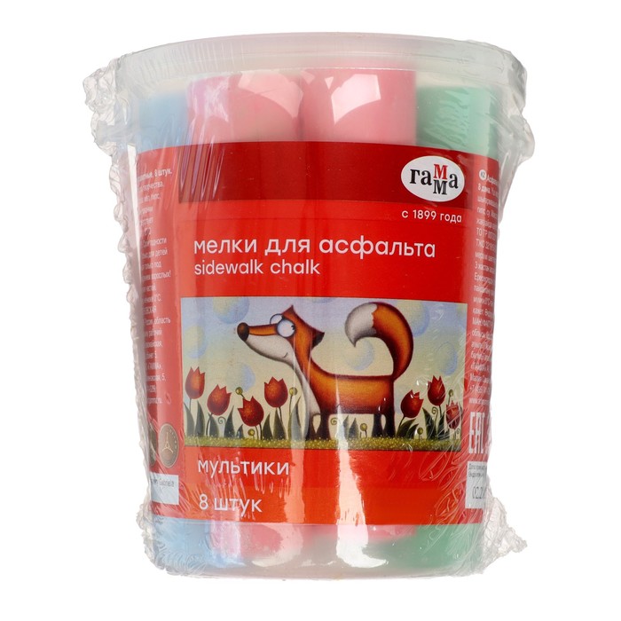 Мелки для асфальта Гамма "Мультики" цветные, 8 штук, круглые, в пластиковом ведре