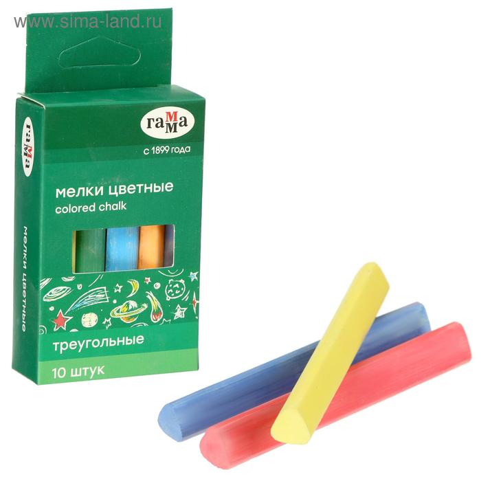 Мелки для рисования "Гамма", цветные, 10 штук, мягкие, треугольная форма, картонная коробка