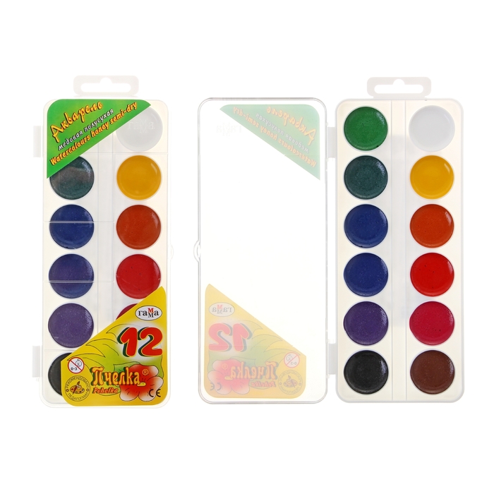 Акварель 12 цветов "Гамма" "Пчёлка", медовая, без кисти, пластик