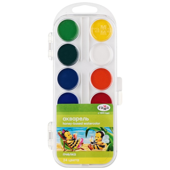 Акварель 24 цвета Гамма "Пчелка", медовая, без кисти, пластик, европодвес 212035